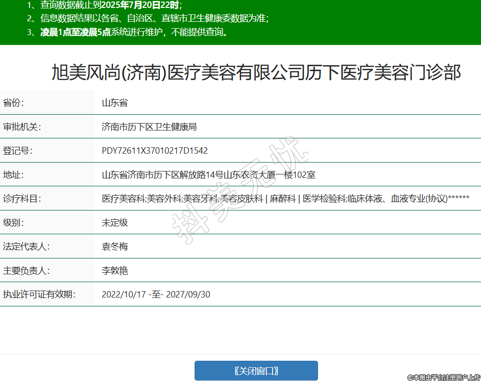 旭美風(fēng)尚(濟(jì)南)醫(yī)療美容有限公司歷下醫(yī)療美容門診部