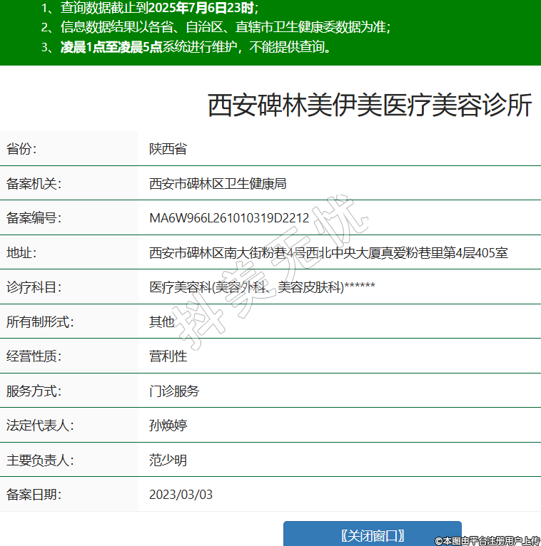 省份:陜西省備案機關:西安市碑林區(qū)衛(wèi)生健康局備案編號:MA6W966L261010319D2212地址:西安市碑林區(qū)南大街粉巷4號西北中央大廈真愛粉巷里第4層405室診療科目:醫(yī)療美容科(美容外科、美容皮膚科)******所有制形式:其他經營性質:營利性服務方式:門診服務法定代表人:孫煥婷主要負責人:范少明備案日期:2023/03/03 -