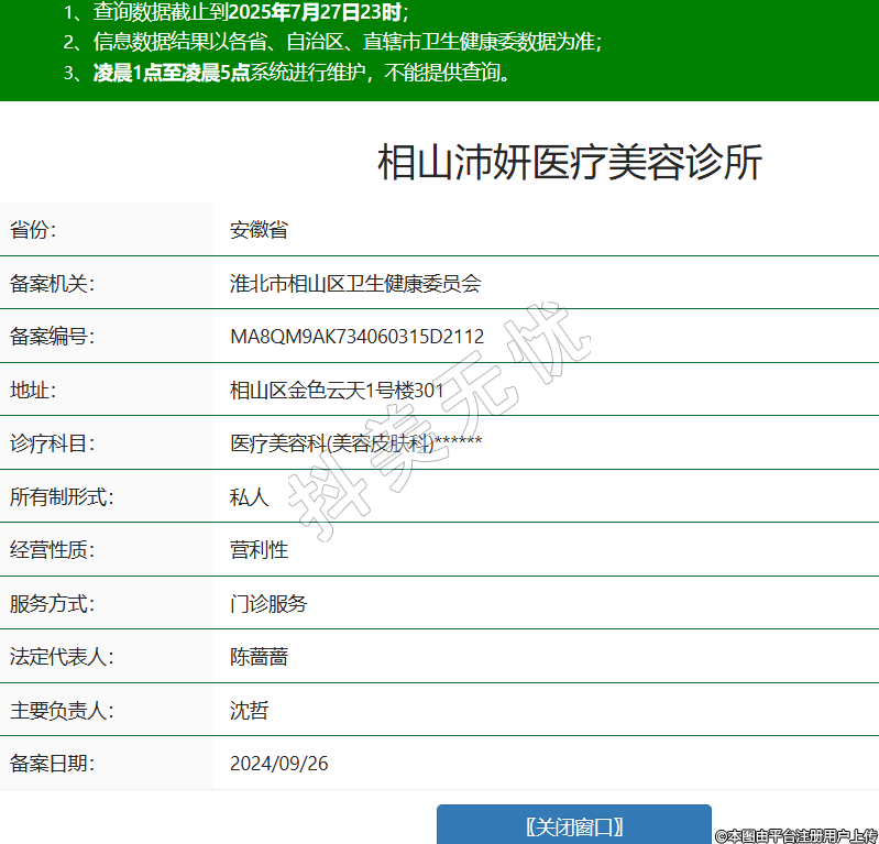 省份:安徽省備案機(jī)關(guān):淮北市相山區(qū)衛(wèi)生健康委員會(huì)備案編號(hào):MA8QM9AK734060315D2112地址:相山區(qū)金色云天1號(hào)樓301診療科目:醫(yī)療美容科(美容皮膚科)******所有制形式:私人經(jīng)營(yíng)性質(zhì):營(yíng)利性服務(wù)方式:門診服務(wù)法定代表人:陳薔薔主要負(fù)責(zé)人:沈哲備案日期:2024/09/26 -