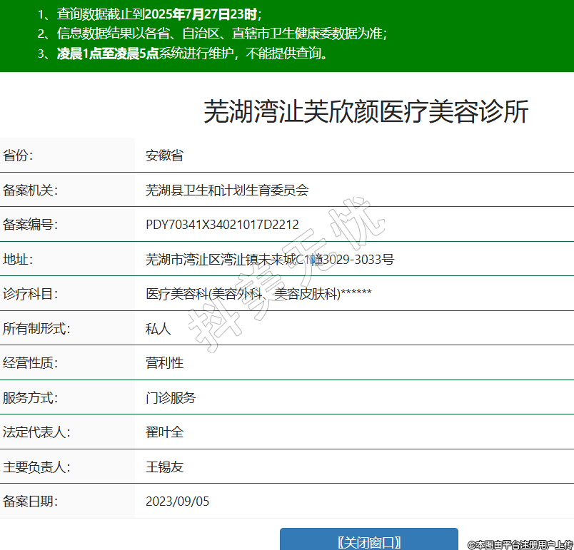 蕪湖灣沚芙欣顏醫(yī)療美容診所