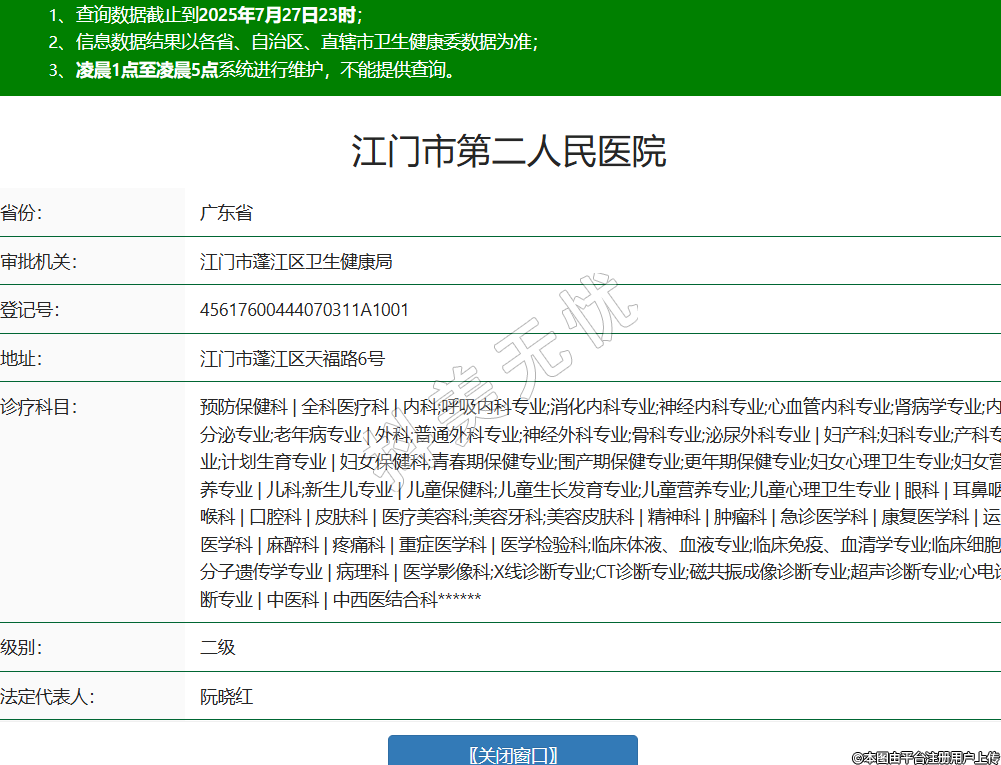 省份:廣東省審批機(jī)關(guān):江門市蓬江區(qū)衛(wèi)生健康局登記號:45617600444070311A1001地址:江門市蓬江區(qū)天福路6號診療科目:預(yù)防保健科 | 全科醫(yī)療科 | 內(nèi)科;呼吸內(nèi)科專業(yè);消化內(nèi)科專業(yè);神經(jīng)內(nèi)科專業(yè);心血管內(nèi)科專業(yè);腎病學(xué)專業(yè);內(nèi)分泌專業(yè);老年病專業(yè) | 外科;普通外科專業(yè);神經(jīng)外科專業(yè);骨科專業(yè);泌尿外科專業(yè) | 婦產(chǎn)科;婦科專業(yè);產(chǎn)科專業(yè);計劃生育專業(yè) | 婦女保健科;青春期保健專業(yè);圍產(chǎn)期保健專業(yè);更年期保健專業(yè);婦女心理衛(wèi)生專業(yè);婦女營養(yǎng)專業(yè) | 兒科;新生兒專業(yè) | 兒童保健科;兒童生長發(fā)育專業(yè);兒童營養(yǎng)專業(yè);兒童心理衛(wèi)生專業(yè) | 眼科 | 耳鼻咽喉科 | 口腔科 | 皮膚科 | 醫(yī)療美容科;美容牙科;美容皮膚科 | 精神科 | 腫瘤科 | 急診醫(yī)學(xué)科 | 康復(fù)醫(yī)學(xué)科 | 運動醫(yī)學(xué)科 | 麻醉科 | 疼痛科 | 重癥醫(yī)學(xué)科 | 醫(yī)學(xué)檢驗科;臨床體液、血液專業(yè);臨床免疫、血清學(xué)專業(yè);臨床細(xì)胞分子遺傳學(xué)專業(yè) | 病理科 | 醫(yī)學(xué)影像科;X線診斷專業(yè);CT診斷專業(yè);磁共振成像診斷專業(yè);超聲診斷專業(yè);心電診斷專業(yè) | 中醫(yī)科 | 中西醫(yī)結(jié)合科******級別:二級法定代表人:阮曉紅主要負(fù)責(zé)人:石志成執(zhí)業(yè)許可證有效期:2024/09/14 -至- 2027/09/24 -