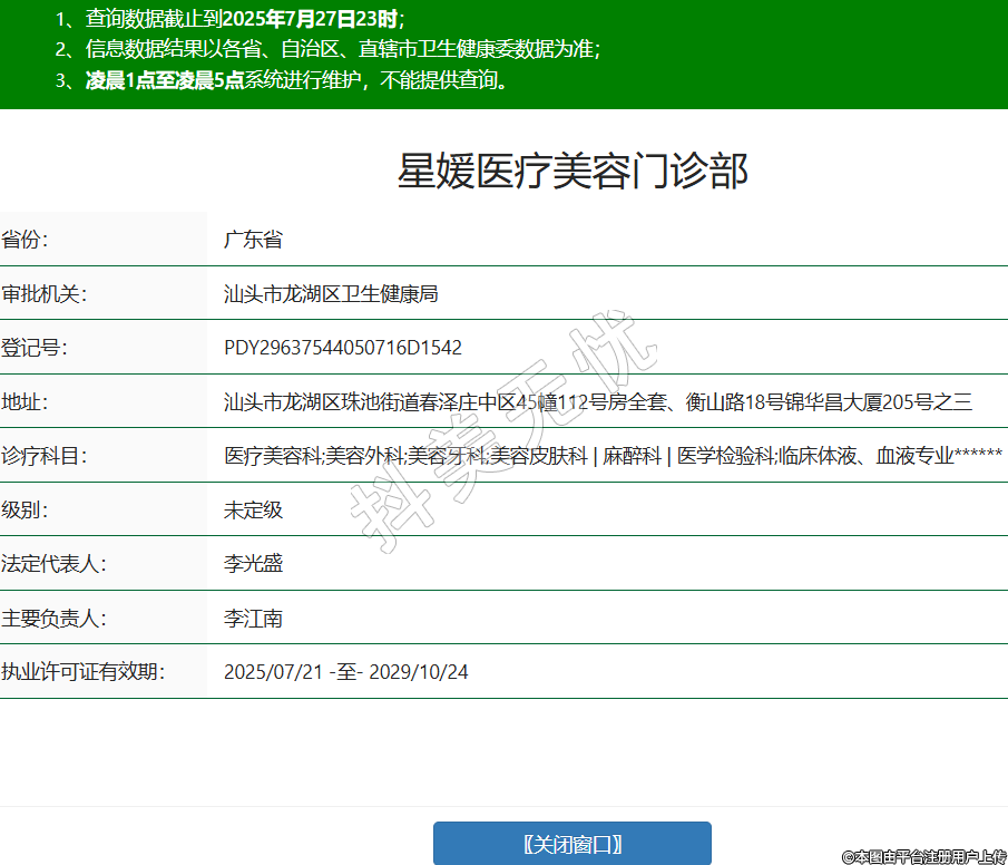 省份:廣東省審批機(jī)關(guān):汕頭市龍湖區(qū)衛(wèi)生健康局登記號(hào):PDY29637544050716D1542地址:汕頭市龍湖區(qū)珠池街道春澤莊中區(qū)45幢112號(hào)房全套、衡山路18號(hào)錦華昌大廈205號(hào)之三診療科目:醫(yī)療美容科;美容外科;美容牙科;美容皮膚科 | 麻醉科 | 醫(yī)學(xué)檢驗(yàn)科;臨床體液、血液專業(yè)******級(jí)別:未定級(jí)法定代表人:李光盛主要負(fù)責(zé)人:李江南執(zhí)業(yè)許可證有效期:2025/07/21 -至- 2029/10/24 -