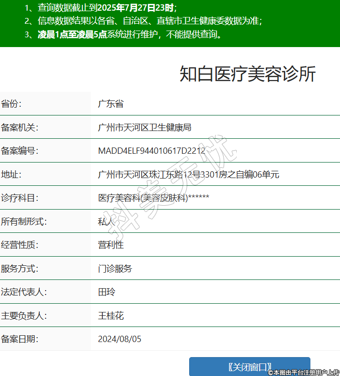 省份:廣東省備案機(jī)關(guān):廣州市天河區(qū)衛(wèi)生健康局備案編號(hào):MADD4ELF944010617D2212地址:廣州市天河區(qū)珠江東路12號(hào)3301房之自編06單元診療科目:醫(yī)療美容科(美容皮膚科)******所有制形式:私人經(jīng)營(yíng)性質(zhì):營(yíng)利性服務(wù)方式:門(mén)診服務(wù)法定代表人:田玲主要負(fù)責(zé)人:王桂花備案日期:2024/08/05 -