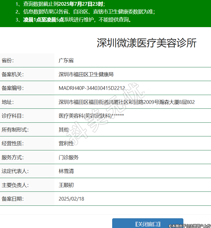 省份:廣東省備案機關(guān):深圳市福田區(qū)衛(wèi)生健康局備案編號:MADRH40P-344030415D2212地址:深圳市福田區(qū)福田街道崗廈社區(qū)彩田路2009號瀚森大廈8層802診療科目:醫(yī)療美容科(美容皮膚科)******所有制形式:其他經(jīng)營性質(zhì):營利性服務方式:門診服務法定代表人:林雪清主要負責人:王順初備案日期:2025/02/18 -