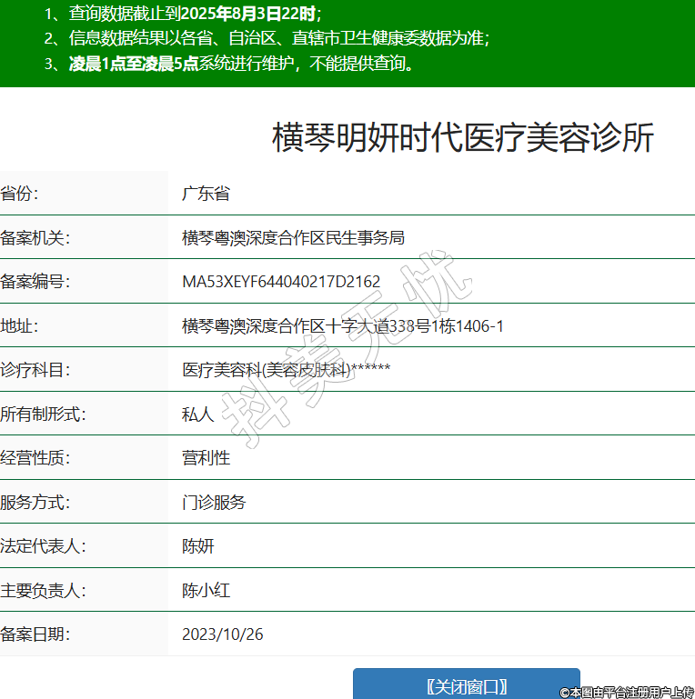 省份:廣東省備案機關:橫琴粵澳深度合作區(qū)民生事務局備案編號:MA53XEYF644040217D2162地址:橫琴粵澳深度合作區(qū)十字大道338號1棟1406-1診療科目:醫(yī)療美容科(美容皮膚科)******所有制形式:私人經(jīng)營性質(zhì):營利性服務方式:門診服務法定代表人:陳妍主要負責人:陳小紅備案日期:2023/10/26 -
