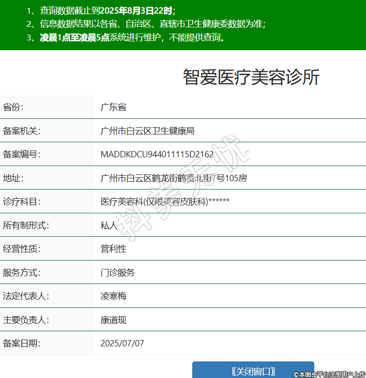 省份:廣東省備案機關(guān):廣州市白云區(qū)衛(wèi)生健康局備案編號:MADDKDCU944011115D2162地址:廣州市白云區(qū)鶴龍街鶴賢北街7號105房診療科目:醫(yī)療美容科(僅限美容皮膚科)******所有制形式:私人經(jīng)營性質(zhì):營利性服務(wù)方式:門診服務(wù)法定代表人:凌寒梅主要負責人:康道現(xiàn)備案日期:2025/07/07 -