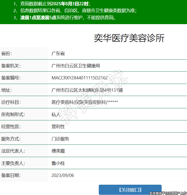 省份:廣東省備案機關:廣州市白云區(qū)衛(wèi)生健康局備案編號:MACCRXY2X44011115D2162地址:廣州市白云區(qū)太和鎮(zhèn)和樂路4號131鋪診療科目:醫(yī)療美容科(僅限美容皮膚科)******所有制形式:私人經營性質:營利性服務方式:門診服務法定代表人:傅美霞主要負責人:魯小桂備案日期:2023/09/06 -
