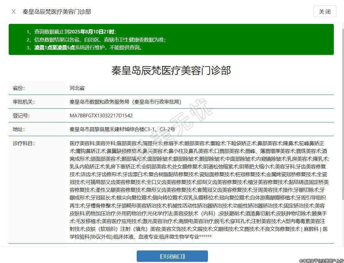 醫(yī)療美容科;美容外科;眉部美容術(shù);眉提升術(shù);修眉手術(shù);眼部美容術(shù);重瞼術(shù);下瞼袋矯正術(shù);鼻部美容術(shù);隆鼻術(shù);駝峰鼻矯正術(shù);鷹鉤鼻矯正術(shù);鼻翼缺損修復術(shù);鼻尖美容術(shù);鼻小柱及鼻孔美容術(shù);口唇部美容術(shù);唇峰、薄唇增厚美容術(shù);唇珠美容術(shù);酒窩成形術(shù);頜面部美容術(shù);顳部填充術(shù);面部除皺術(shù);額部除皺術(shù);顳部除皺術(shù);中面部除皺術(shù);內(nèi)窺鏡除皺術(shù);乳房美容術(shù);隆乳術(shù);乳頭內(nèi)陷矯正術(shù);乳房下垂矯正術(shù);會陰部美容術(shù);處女膜修復術(shù);陰道松弛縮緊術(shù);陰蒂肥大縮小術(shù);美容牙科;牙齒美容修復技術(shù);潔齒術(shù);牙齒修形術(shù);牙齒漂白術(shù);復合樹脂黏結(jié)修復技術(shù);瓷貼面修復技術(shù);樁冠修復技術(shù);金屬烤瓷冠橋修復技術(shù);全瓷冠技術(shù);可摘局部義齒美容修復技術(shù);全口義齒美容修復技術(shù);即刻義齒美容修復技術(shù);植牙美容修復技術(shù);黏結(jié)鑄造固定橋美容修復技術(shù);柔性義齦美容修復技術(shù);隱形義齒美容修復技術(shù);套筒冠義齒美容修復技術(shù);牙周美容技術(shù)操作;牙齦切除術(shù);牙齦成形術(shù);牙冠延長術(shù);根尖向復位瓣術(shù);側(cè)向轉(zhuǎn)位瓣術(shù);雙乳頭瓣移位術(shù);冠向復位瓣術(shù);自體游離齦瓣移植術(shù);牙周引導組織再生術(shù);牙槽骨修整術(shù);牙頜畸形美容矯治技術(shù);機械性活動性矯治器矯治技術(shù);功能性矯治器矯治技術(shù);固定矯治技術(shù);美容皮膚科;藥物加壓治療;外用藥物治療;光化學療法;美容皮膚術(shù)(內(nèi)科);皮膚磨削術(shù);酒渣鼻切割術(shù);皮膚腫物切除術(shù);腋臭手術(shù);毛發(fā)移植術(shù);美容醫(yī)療應用技術(shù);激光美容治療術(shù);高頻電美容治療;脫毛術(shù);穿耳孔術(shù);注射美容技術(shù);A型肉毒毒素美容注射技術(shù);皮膚(軟組織)注射(填充)美容;美容文飾技術(shù);文眉技術(shù);文眼線技術(shù);文唇技術(shù);不良文飾修復技術(shù) | 麻醉科 | 醫(yī)學檢驗科(協(xié)議外包);臨床體液、血液專業(yè);臨床微生物學專業(yè)******