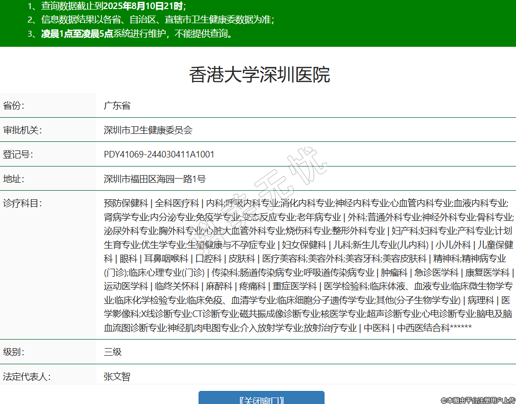 省份:廣東省審批機關(guān):深圳市衛(wèi)生健康委員會登記號:PDY41069-244030411A1001地址:深圳市福田區(qū)海園一路1號診療科目:預(yù)防保健科 | 全科醫(yī)療科 | 內(nèi)科;呼吸內(nèi)科專業(yè);消化內(nèi)科專業(yè);神經(jīng)內(nèi)科專業(yè);心血管內(nèi)科專業(yè);血液內(nèi)科專業(yè);腎病學(xué)專業(yè);內(nèi)分泌專業(yè);免疫學(xué)專業(yè);變態(tài)反應(yīng)專業(yè);老年病專業(yè) | 外科;普通外科專業(yè);神經(jīng)外科專業(yè);骨科專業(yè);泌尿外科專業(yè);胸外科專業(yè);心臟大血管外科專業(yè);燒傷科專業(yè);整形外科專業(yè) | 婦產(chǎn)科;婦科專業(yè);產(chǎn)科專業(yè);計劃生育專業(yè);優(yōu)生學(xué)專業(yè);生殖健康與不孕癥專業(yè) | 婦女保健科 | 兒科;新生兒專業(yè)(兒內(nèi)科) | 小兒外科 | 兒童保健科 | 眼科 | 耳鼻咽喉科 | 口腔科 | 皮膚科 | 醫(yī)療美容科;美容外科;美容牙科;美容皮膚科 | 精神科;精神病專業(yè)(門診);臨床心理專業(yè)(門診) | 傳染科;腸道傳染病專業(yè);呼吸道傳染病專業(yè) | 腫瘤科 | 急診醫(yī)學(xué)科 | 康復(fù)醫(yī)學(xué)科 | 運動醫(yī)學(xué)科 | 臨終關(guān)懷科 | 麻醉科 | 疼痛科 | 重癥醫(yī)學(xué)科 | 醫(yī)學(xué)檢驗科;臨床體液、血液專業(yè);臨床微生物學(xué)專業(yè);臨床化學(xué)檢驗專業(yè);臨床免疫、血清學(xué)專業(yè);臨床細胞分子遺傳學(xué)專業(yè);其他(分子生物學(xué)專業(yè)) | 病理科 | 醫(yī)學(xué)影像科;X線診斷專業(yè);CT診斷專業(yè);磁共振成像診斷專業(yè);核醫(yī)學(xué)專業(yè);超聲診斷專業(yè);心電診斷專業(yè);腦電及腦血流圖診斷專業(yè);神經(jīng)肌肉電圖專業(yè);介入放射學(xué)專業(yè);放射治療專業(yè) | 中醫(yī)科 | 中西醫(yī)結(jié)合科******級別:三級法定代表人:張文智主要負責(zé)人:***執(zhí)業(yè)許可證有效期:2021/11/05 -至- 2036/11/04 -