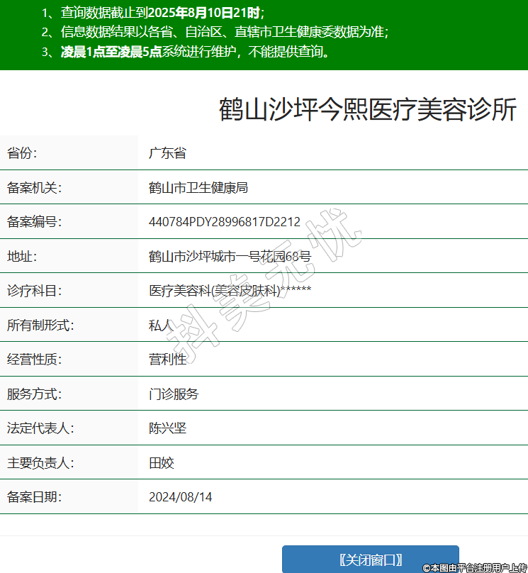 省份:廣東省備案機關:鶴山市衛(wèi)生健康局備案編號:440784PDY28996817D2212地址:鶴山市沙坪城市一號花園68號診療科目:醫(yī)療美容科(美容皮膚科)******所有制形式:私人經(jīng)營性質(zhì):營利性服務方式:門診服務法定代表人:陳興堅主要負責人:田姣備案日期:2024/08/14 -