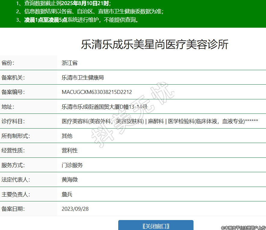 樂(lè)清樂(lè)成樂(lè)美星尚醫(yī)療美容診所,診療科目:醫(yī)療美容科(美容外科,美容皮膚科) | 麻醉科 | 醫(yī)學(xué)檢驗(yàn)科(臨床體液,血液專(zhuān)業(yè))******
