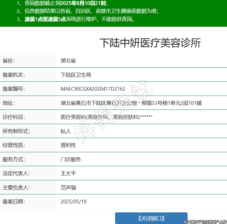 省份:湖北省備案機(jī)關(guān):下陸區(qū)衛(wèi)生局備案編號(hào):MAEC90CGX42020417D2162地址:湖北省黃石市下陸區(qū)黃石萬(wàn)達(dá)公館一期第S3號(hào)樓1單元2層101鋪診療科目:醫(yī)療美容科(美容外科、美容皮膚科)******所有制形式:私人經(jīng)營(yíng)性質(zhì):營(yíng)利性服務(wù)方式:門診服務(wù)法定代表人:王太平主要負(fù)責(zé)人:范聲強(qiáng)備案日期:2025/05/19 -