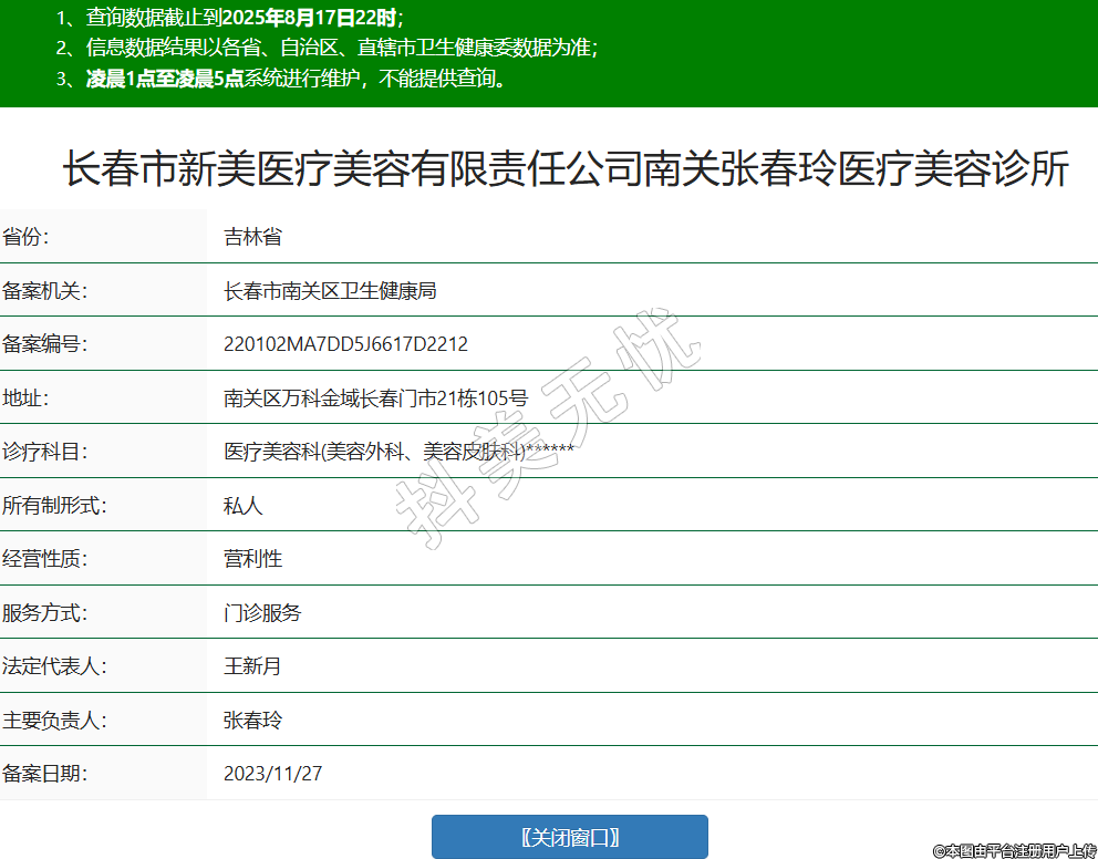 長春市新美醫(yī)療美容有限責任公司南關(guān)張春玲醫(yī)療美容診所