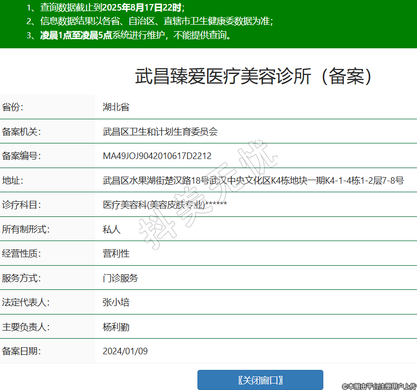 省份:湖北省備案機關(guān):武昌區(qū)衛(wèi)生和計劃生育委員會備案編號:MA49JOJ9042010617D2212地址:武昌區(qū)水果湖街楚漢路18號武漢中央文化區(qū)K4棟地塊一期K4-1-4棟1-2層7-8號診療科目:醫(yī)療美容科(美容皮膚專業(yè))******所有制形式:私人經(jīng)營性質(zhì):營利性服務(wù)方式:門診服務(wù)法定代表人:張小培主要負責人:楊利勤備案日期:2024/01/09 -