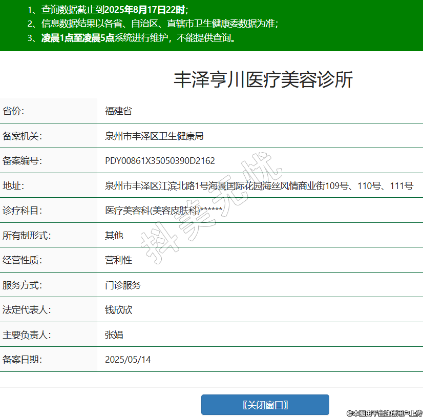 泉州亨川醫(yī)療美容診所于2024年創(chuàng)建,選址在泉州市豐澤區(qū)江濱北路1號海景國際花園海絲風(fēng)情商業(yè)街,具體位于109號、110號、111號商鋪,緊鄰江濱景觀帶,周邊交通便捷,商業(yè)氛圍濃厚,方便顧客到店。