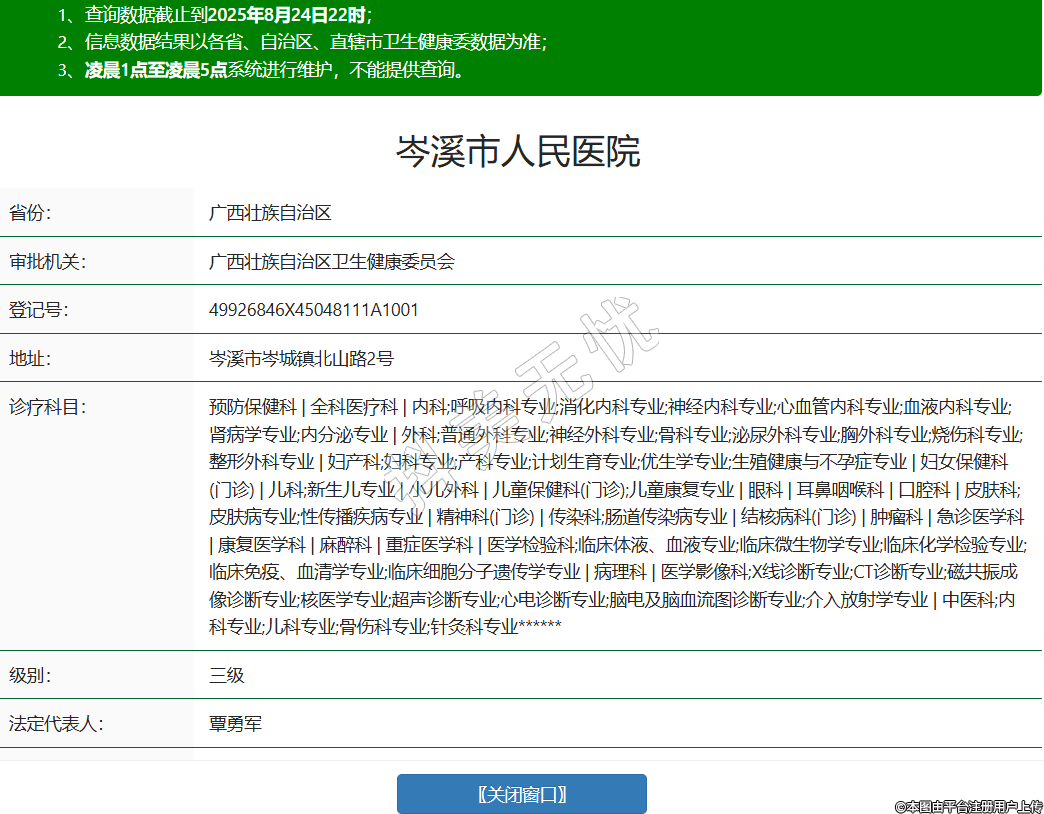 省份:廣西壯族自治區(qū)審批機關(guān):廣西壯族自治區(qū)衛(wèi)生健康委員會登記號:49926846X45048111A1001地址:岑溪市岑城鎮(zhèn)北山路2號診療科目:預(yù)防保健科 | 全科醫(yī)療科 | 內(nèi)科;呼吸內(nèi)科專業(yè);消化內(nèi)科專業(yè);神經(jīng)內(nèi)科專業(yè);心血管內(nèi)科專業(yè);血液內(nèi)科專業(yè);腎病學(xué)專業(yè);內(nèi)分泌專業(yè) | 外科;普通外科專業(yè);神經(jīng)外科專業(yè);骨科專業(yè);泌尿外科專業(yè);胸外科專業(yè);燒傷科專業(yè);整形外科專業(yè) | 婦產(chǎn)科;婦科專業(yè);產(chǎn)科專業(yè);計劃生育專業(yè);優(yōu)生學(xué)專業(yè);生殖健康與不孕癥專業(yè) | 婦女保健科(門診) | 兒科;新生兒專業(yè) | 小兒外科 | 兒童保健科(門診);兒童康復(fù)專業(yè) | 眼科 | 耳鼻咽喉科 | 口腔科 | 皮膚科;皮膚病專業(yè);性傳播疾病專業(yè) | 精神科(門診) | 傳染科;腸道傳染病專業(yè) | 結(jié)核病科(門診) | 腫瘤科 | 急診醫(yī)學(xué)科 | 康復(fù)醫(yī)學(xué)科 | 麻醉科 | 重癥醫(yī)學(xué)科 | 醫(yī)學(xué)檢驗科;臨床體液、血液專業(yè);臨床微生物學(xué)專業(yè);臨床化學(xué)檢驗專業(yè);臨床免疫、血清學(xué)專業(yè);臨床細(xì)胞分子遺傳學(xué)專業(yè) | 病理科 | 醫(yī)學(xué)影像科;X線診斷專業(yè);CT診斷專業(yè);磁共振成像診斷專業(yè);核醫(yī)學(xué)專業(yè);超聲診斷專業(yè);心電診斷專業(yè);腦電及腦血流圖診斷專業(yè);介入放射學(xué)專業(yè) | 中醫(yī)科;內(nèi)科專業(yè);兒科專業(yè);骨傷科專業(yè);針灸科專業(yè)******級別:三級法定代表人:覃勇軍主要負(fù)責(zé)人:覃勇軍執(zhí)業(yè)許可證有效期:2020/10/27 -至- 2035/10/26 -