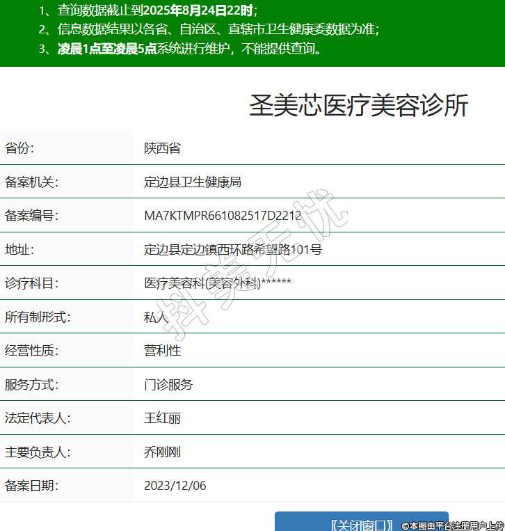 省份:陜西省備案機關(guān):定邊縣衛(wèi)生健康局備案編號:MA7KTMPR661082517D2212地址:定邊縣定邊鎮(zhèn)西環(huán)路希望路101號診療科目:醫(yī)療美容科(美容外科)******所有制形式:私人經(jīng)營性質(zhì):營利性服務(wù)方式:門診服務(wù)法定代表人:王紅麗主要負(fù)責(zé)人:喬剛剛備案日期:2023/12/06 -