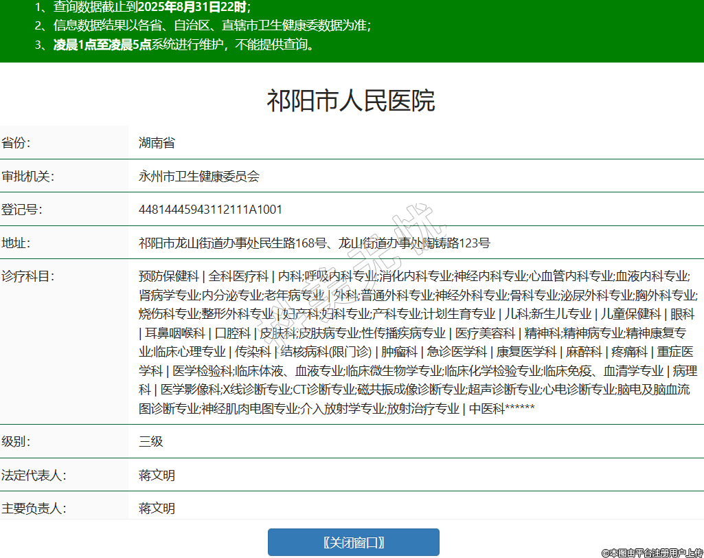省份:湖南省審批機關:永州市衛(wèi)生健康委員會登記號:44814445943112111A1001地址:祁陽市龍山街道辦事處民生路168號、龍山街道辦事處陶鑄路123號診療科目:預防保健科 | 全科醫(yī)療科 | 內科;呼吸內科專業(yè);消化內科專業(yè);神經內科專業(yè);心血管內科專業(yè);血液內科專業(yè);腎病學專業(yè);內分泌專業(yè);老年病專業(yè) | 外科;普通外科專業(yè);神經外科專業(yè);骨科專業(yè);泌尿外科專業(yè);胸外科專業(yè);燒傷科專業(yè);整形外科專業(yè) | 婦產科;婦科專業(yè);產科專業(yè);計劃生育專業(yè) | 兒科;新生兒專業(yè) | 兒童保健科 | 眼科 | 耳鼻咽喉科 | 口腔科 | 皮膚科;皮膚病專業(yè);性傳播疾病專業(yè) | 醫(yī)療美容科 | 精神科;精神病專業(yè);精神康復專業(yè);臨床心理專業(yè) | 傳染科 | 結核病科(限門診) | 腫瘤科 | 急診醫(yī)學科 | 康復醫(yī)學科 | 麻醉科 | 疼痛科 | 重癥醫(yī)學科 | 醫(yī)學檢驗科;臨床體液、血液專業(yè);臨床微生物學專業(yè);臨床化學檢驗專業(yè);臨床免疫、血清學專業(yè) | 病理科 | 醫(yī)學影像科;X線診斷專業(yè);CT診斷專業(yè);磁共振成像診斷專業(yè);超聲診斷專業(yè);心電診斷專業(yè);腦電及腦血流圖診斷專業(yè);神經肌肉電圖專業(yè);介入放射學專業(yè);放射治療專業(yè) | 中醫(yī)科******級別:三級法定代表人:蔣文明主要負責人:蔣文明執(zhí)業(yè)許可證有效期:2022/09/09 -至- 2037/09/09 -