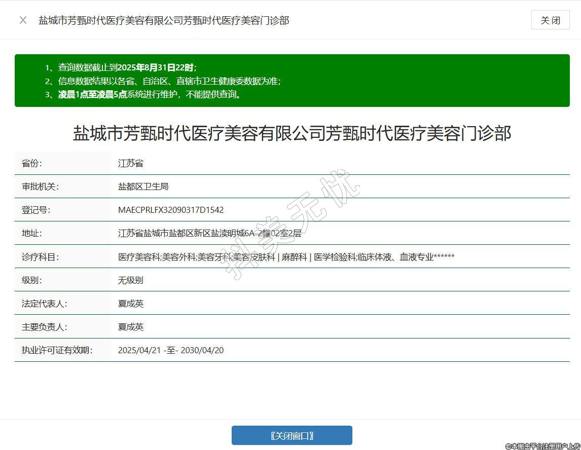 鹽城市芳甄時(shí)代醫(yī)療美容有限公司芳甄時(shí)代醫(yī)療美容門診部