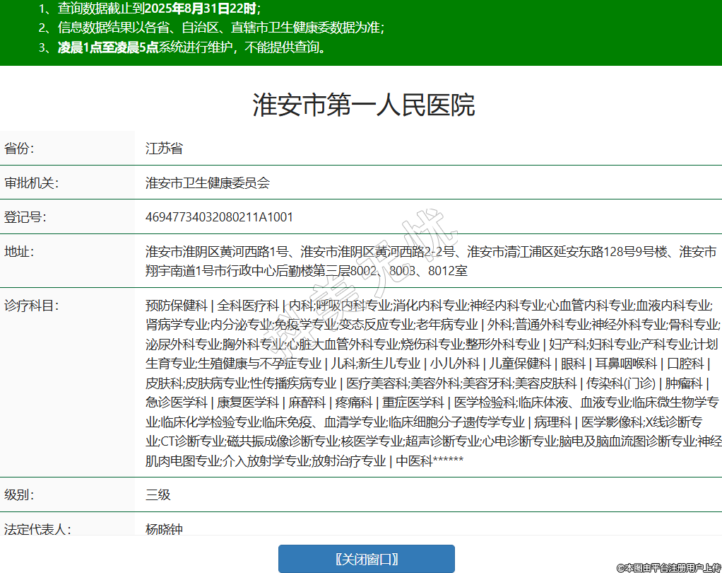 省份:江蘇省審批機(jī)關(guān):淮安市衛(wèi)生健康委員會(huì)登記號(hào):46947734032080211A1001地址:淮安市淮陰區(qū)黃河西路1號(hào)、淮安市淮陰區(qū)黃河西路2-2號(hào)、淮安市清江浦區(qū)延安東路128號(hào)9號(hào)樓、淮安市翔宇南道1號(hào)市行政中心后勤樓第三層8002、8003、8012室診療科目:預(yù)防保健科 | 全科醫(yī)療科 | 內(nèi)科;呼吸內(nèi)科專業(yè);消化內(nèi)科專業(yè);神經(jīng)內(nèi)科專業(yè);心血管內(nèi)科專業(yè);血液內(nèi)科專業(yè);腎病學(xué)專業(yè);內(nèi)分泌專業(yè);免疫學(xué)專業(yè);變態(tài)反應(yīng)專業(yè);老年病專業(yè) | 外科;普通外科專業(yè);神經(jīng)外科專業(yè);骨科專業(yè);泌尿外科專業(yè);胸外科專業(yè);心臟大血管外科專業(yè);燒傷科專業(yè);整形外科專業(yè) | 婦產(chǎn)科;婦科專業(yè);產(chǎn)科專業(yè);計(jì)劃生育專業(yè);生殖健康與不孕癥專業(yè) | 兒科;新生兒專業(yè) | 小兒外科 | 兒童保健科 | 眼科 | 耳鼻咽喉科 | 口腔科 | 皮膚科;皮膚病專業(yè);性傳播疾病專業(yè) | 醫(yī)療美容科;美容外科;美容牙科;美容皮膚科 | 傳染科(門(mén)診) | 腫瘤科 | 急診醫(yī)學(xué)科 | 康復(fù)醫(yī)學(xué)科 | 麻醉科 | 疼痛科 | 重癥醫(yī)學(xué)科 | 醫(yī)學(xué)檢驗(yàn)科;臨床體液、血液專業(yè);臨床微生物學(xué)專業(yè);臨床化學(xué)檢驗(yàn)專業(yè);臨床免疫、血清學(xué)專業(yè);臨床細(xì)胞分子遺傳學(xué)專業(yè) | 病理科 | 醫(yī)學(xué)影像科;X線診斷專業(yè);CT診斷專業(yè);磁共振成像診斷專業(yè);核醫(yī)學(xué)專業(yè);超聲診斷專業(yè);心電診斷專業(yè);腦電及腦血流圖診斷專業(yè);神經(jīng)肌肉電圖專業(yè);介入放射學(xué)專業(yè);放射治療專業(yè) | 中醫(yī)科******級(jí)別:三級(jí)法定代表人:楊曉鐘主要負(fù)責(zé)人:楊曉鐘執(zhí)業(yè)許可證有效期:2024/04/09 -至- 2036/01/19 -