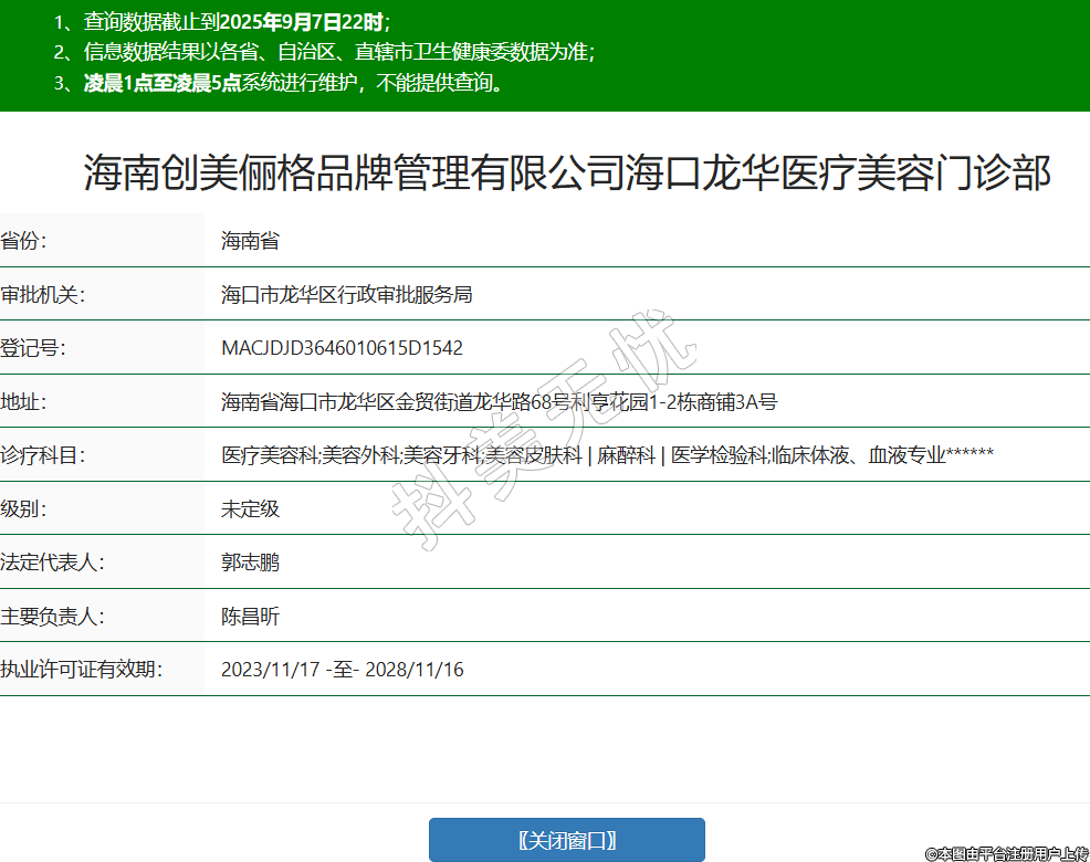 海南創(chuàng)美儷格品牌管理有限公司??邶埲A醫(yī)療美容門(mén)診部