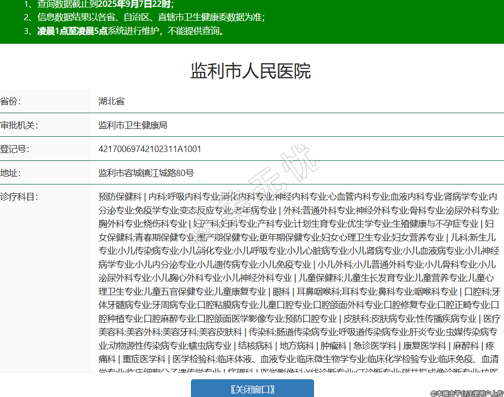 省份:湖北省審批機關(guān):監(jiān)利市衛(wèi)生健康局登記號:42170069742102311A1001地址:監(jiān)利市容城鎮(zhèn)江城路80號診療科目:預防保健科 | 內(nèi)科;呼吸內(nèi)科專業(yè);消化內(nèi)科專業(yè);神經(jīng)內(nèi)科專業(yè);心血管內(nèi)科專業(yè);血液內(nèi)科專業(yè);腎病學專業(yè);內(nèi)分泌專業(yè);免疫學專業(yè);變態(tài)反應專業(yè);老年病專業(yè) | 外科;普通外科專業(yè);神經(jīng)外科專業(yè);骨科專業(yè);泌尿外科專業(yè);胸外科專業(yè);燒傷科專業(yè) | 婦產(chǎn)科;婦科專業(yè);產(chǎn)科專業(yè);計劃生育專業(yè);優(yōu)生學專業(yè);生殖健康與不孕癥專業(yè) | 婦女保健科;青春期保健專業(yè);圍產(chǎn)期保健專業(yè);更年期保健專業(yè);婦女心理衛(wèi)生專業(yè);婦女營養(yǎng)專業(yè) | 兒科;新生兒專業(yè);小兒傳染病專業(yè);小兒消化專業(yè);小兒呼吸專業(yè);小兒心臟病專業(yè);小兒腎病專業(yè);小兒血液病專業(yè);小兒神經(jīng)病學專業(yè);小兒內(nèi)分泌專業(yè);小兒遺傳病專業(yè);小兒免疫專業(yè) | 小兒外科;小兒普通外科專業(yè);小兒骨科專業(yè);小兒泌尿外科專業(yè);小兒胸心外科專業(yè);小兒神經(jīng)外科專業(yè) | 兒童保健科;兒童生長發(fā)育專業(yè);兒童營養(yǎng)專業(yè);兒童心理衛(wèi)生專業(yè);兒童五官保健專業(yè);兒童康復專業(yè) | 眼科 | 耳鼻咽喉科;耳科專業(yè);鼻科專業(yè);咽喉科專業(yè) | 口腔科;牙體牙髓病專業(yè);牙周病專業(yè);口腔粘膜病專業(yè);兒童口腔專業(yè);口腔頜面外科專業(yè);口腔修復專業(yè);口腔正畸專業(yè);口腔種植專業(yè);口腔麻醉專業(yè);口腔頜面醫(yī)學影像專業(yè);預防口腔專業(yè) | 皮膚科;皮膚病專業(yè);性傳播疾病專業(yè) | 醫(yī)療美容科;美容外科;美容牙科;美容皮膚科 | 傳染科;腸道傳染病專業(yè);呼吸道傳染病專業(yè);肝炎專業(yè);蟲媒傳染病專業(yè);動物源性傳染病專業(yè);蠕蟲病專業(yè) | 結(jié)核病科 | 地方病科 | 腫瘤科 | 急診醫(yī)學科 | 康復醫(yī)學科 | 麻醉科 | 疼痛科 | 重癥醫(yī)學科 | 醫(yī)學檢驗科;臨床體液、血液專業(yè);臨床微生物學專業(yè);臨床化學檢驗專業(yè);臨床免疫、血清學專業(yè);臨床細胞分子遺傳學專業(yè) | 病理科 | 醫(yī)學影像科;X線診斷專業(yè);CT診斷專業(yè);磁共振成像診斷專業(yè);核醫(yī)學專業(yè);超聲診斷專業(yè);心電診斷專業(yè);腦電及腦血流圖診斷專業(yè);神經(jīng)肌肉電圖專業(yè);介入放射學專業(yè);放射治療專業(yè) | 中醫(yī)科;內(nèi)科專業(yè);骨傷科專業(yè);肛腸科專業(yè);老年病科專業(yè);針灸科專業(yè);推拿科專業(yè);康復醫(yī)學專業(yè) | 中西醫(yī)結(jié)合科******級別:二級法定代表人:鄧志波主要負責人:鄧志波執(zhí)業(yè)許可證有效期:2017/06/14 -至- 2032/06/13 -