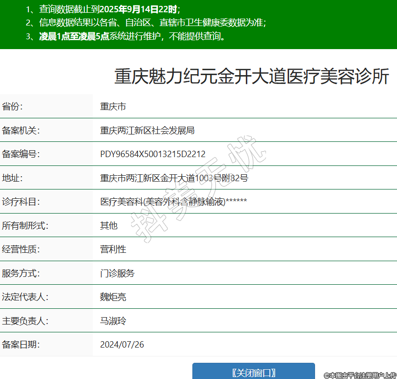 重慶魅力紀元金開大道醫(yī)療美容診所,診療科目:醫(yī)療美容科(美容外科含靜脈輸液)******