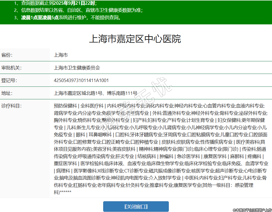 省份:上海市審批機(jī)關(guān):上海市衛(wèi)生健康委員會(huì)登記號(hào):42505439731011411A1001地址:上海市嘉定區(qū)城北路1號(hào)、博樂南路111號(hào)診療科目:預(yù)防保健科 | 全科醫(yī)療科 | 內(nèi)科;呼吸內(nèi)科專業(yè);消化內(nèi)科專業(yè);神經(jīng)內(nèi)科專業(yè);心血管內(nèi)科專業(yè);血液內(nèi)科專業(yè);腎病學(xué)專業(yè);內(nèi)分泌專業(yè);免疫學(xué)專業(yè);老年病專業(yè) | 外科;普通外科專業(yè);神經(jīng)外科專業(yè);骨科專業(yè);泌尿外科專業(yè);胸外科專業(yè);燒傷科專業(yè);整形外科專業(yè) | 婦產(chǎn)科;婦科專業(yè);產(chǎn)科專業(yè);計(jì)劃生育專業(yè) | 婦女保健科;更年期保健專業(yè) | 兒科;新生兒專業(yè);小兒消化專業(yè);小兒呼吸專業(yè);小兒腎病專業(yè);小兒神經(jīng)病學(xué)專業(yè);小兒內(nèi)分泌專業(yè);小兒免疫專業(yè) | 眼科 | 耳鼻咽喉科 | 口腔科;牙體牙髓病專業(yè);牙周病專業(yè);口腔粘膜病專業(yè);兒童口腔專業(yè);口腔頜面外科專業(yè);口腔修復(fù)專業(yè);口腔正畸專業(yè);口腔種植專業(yè) | 皮膚科;皮膚病專業(yè);性傳播疾病專業(yè) | 醫(yī)療美容科(具體項(xiàng)目見服務(wù)內(nèi)容);美容牙科;美容皮膚科 | 精神科;精神病專業(yè)(限門診);臨床心理專業(yè)(限門診) | 傳染科;腸道傳染病專業(yè);呼吸道傳染病專業(yè);肝炎專業(yè) | 結(jié)核病科 | 腫瘤科 | 急診醫(yī)學(xué)科 | 康復(fù)醫(yī)學(xué)科 | 麻醉科 | 疼痛科 | 重癥醫(yī)學(xué)科 | 醫(yī)學(xué)檢驗(yàn)科;臨床體液、血液專業(yè);臨床微生物學(xué)專業(yè);臨床化學(xué)檢驗(yàn)專業(yè);臨床免疫、血清學(xué)專業(yè) | 病理科 | 醫(yī)學(xué)影像科;X線診斷專業(yè);CT診斷專業(yè);磁共振成像診斷專業(yè);核醫(yī)學(xué)專業(yè);超聲診斷專業(yè);心電診斷專業(yè);腦電及腦血流圖診斷專業(yè);神經(jīng)肌肉電圖專業(yè);介入放射學(xué)專業(yè) | 中醫(yī)科;內(nèi)科專業(yè);婦產(chǎn)科專業(yè);兒科專業(yè);骨傷科專業(yè);肛腸科專業(yè);老年病科專業(yè);針灸科專業(yè);推拿科專業(yè);康復(fù)醫(yī)學(xué)專業(yè)(其他一級(jí)科目:感染管理科)******級(jí)別:二級(jí)法定代表人:戴慧莉主要負(fù)責(zé)人:戴慧莉執(zhí)業(yè)許可證有效期:2019/05/30 -至- 2031/06/30 -