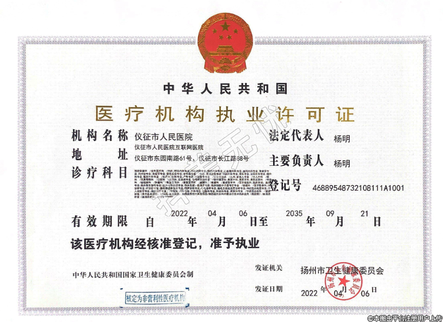 發(fā)證機(jī)關(guān):揚(yáng)州市衛(wèi)生健康委員會(huì)