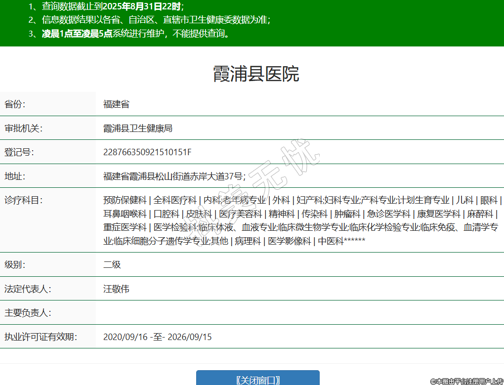 省份:福建省審批機(jī)關(guān):霞浦縣衛(wèi)生健康局登記號(hào):228766350921510151F地址:福建省霞浦縣松山街道赤岸大道37號(hào);診療科目:預(yù)防保健科 | 全科醫(yī)療科 | 內(nèi)科;老年病專業(yè) | 外科 | 婦產(chǎn)科;婦科專業(yè);產(chǎn)科專業(yè);計(jì)劃生育專業(yè) | 兒科 | 眼科 | 耳鼻咽喉科 | 口腔科 | 皮膚科 | 醫(yī)療美容科 | 精神科 | 傳染科 | 腫瘤科 | 急診醫(yī)學(xué)科 | 康復(fù)醫(yī)學(xué)科 | 麻醉科 | 重癥醫(yī)學(xué)科 | 醫(yī)學(xué)檢驗(yàn)科;臨床體液、血液專業(yè);臨床微生物學(xué)專業(yè);臨床化學(xué)檢驗(yàn)專業(yè);臨床免疫、血清學(xué)專業(yè);臨床細(xì)胞分子遺傳學(xué)專業(yè);其他 | 病理科 | 醫(yī)學(xué)影像科 | 中醫(yī)科******級(jí)別:二級(jí)法定代表人:汪敬偉主要負(fù)責(zé)人:執(zhí)業(yè)許可證有效期:2020/09/16 -至- 2026/09/15 -