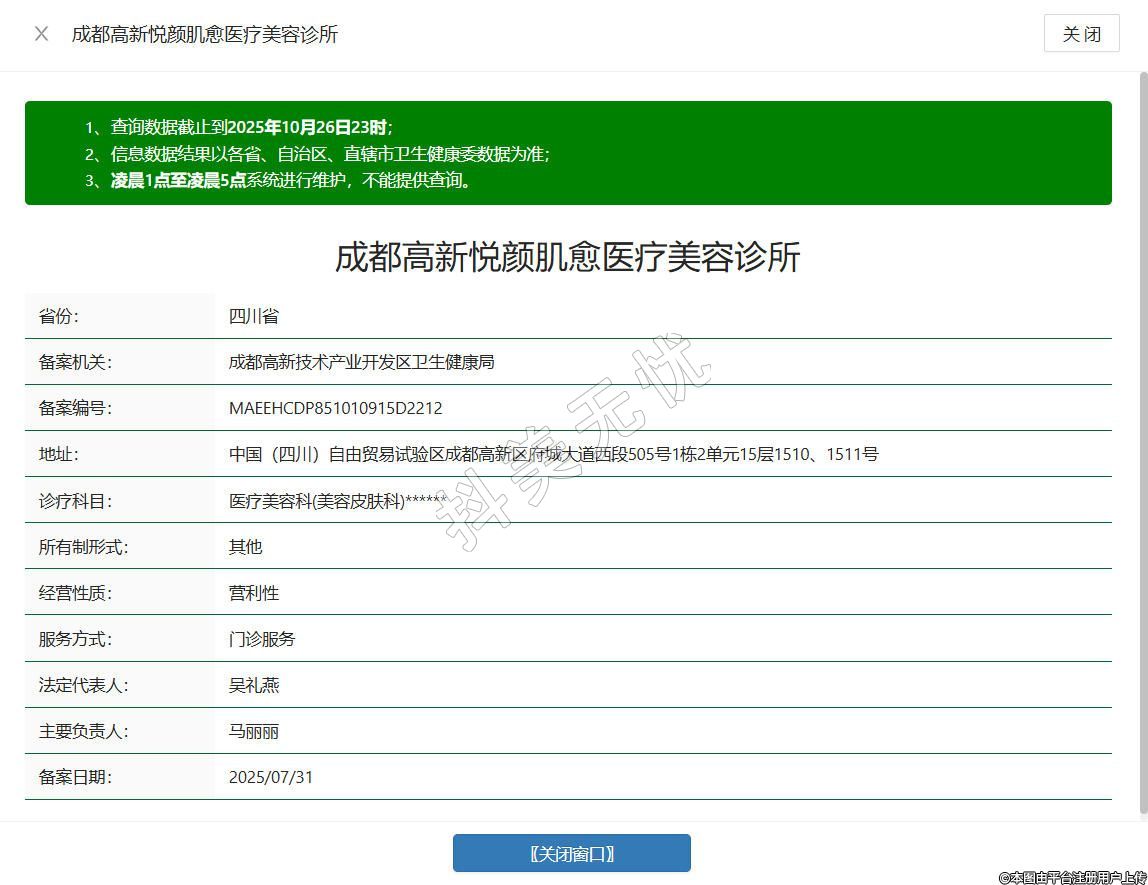 成都高新悅顏肌愈醫(yī)療美容診所成立于2025年,位于中國(四川)自由貿(mào)易試驗(yàn)區(qū)成都高新區(qū)府城大道西段505號1棟2單元15層1510、1511號,是經(jīng)衛(wèi)生計生行政部門登記注冊,深耕皮膚健康與輕醫(yī)美領(lǐng)域,聚焦膚色膚質(zhì)改善、色素問題調(diào)理、敏感肌修復(fù)及肌膚年輕化管理等需求,依托合規(guī)醫(yī)療團(tuán)隊與先進(jìn)診療設(shè)備,致力于為求美者提供安全、規(guī)范、可信賴的醫(yī)療美容服務(wù)。