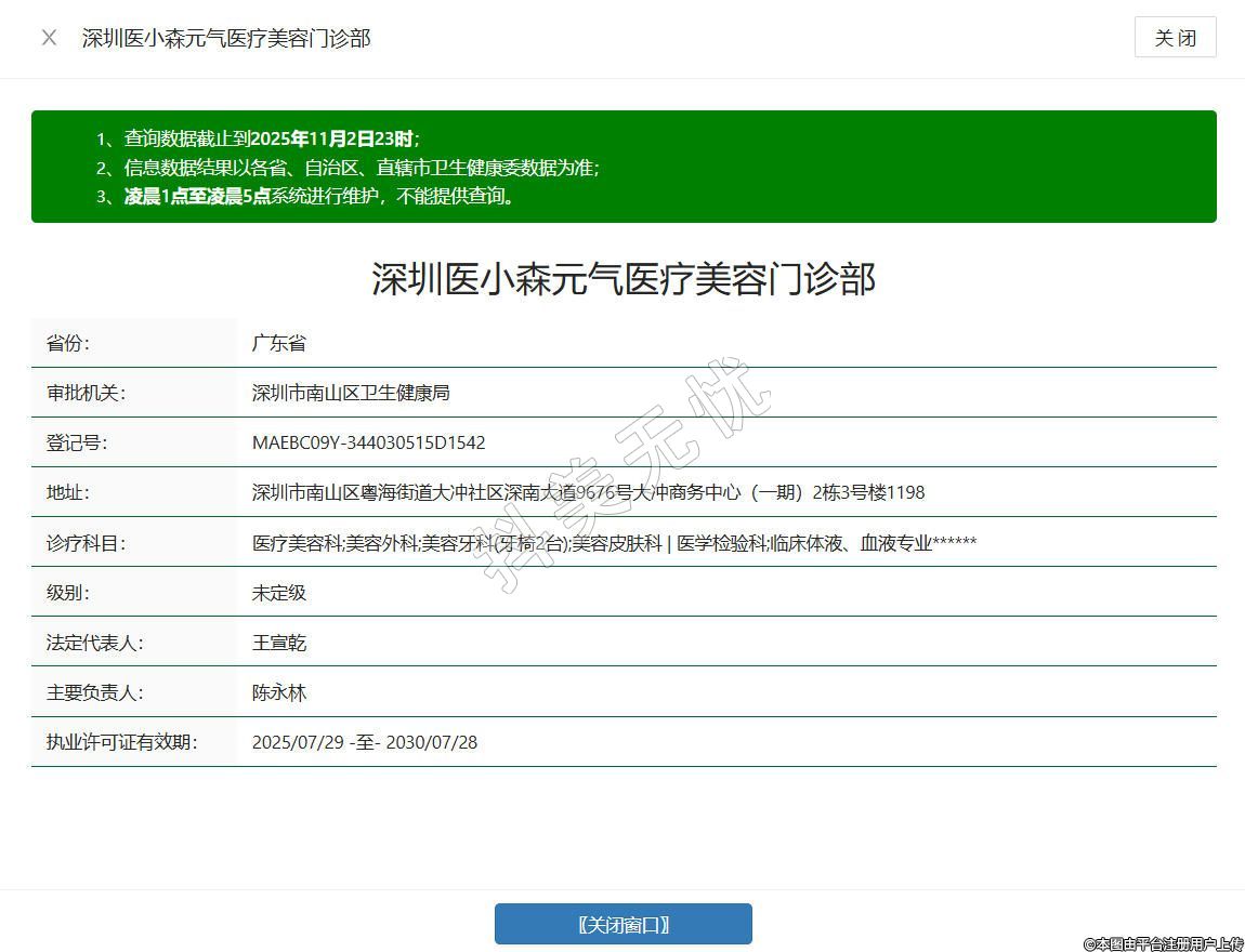 深圳醫(yī)小森元氣醫(yī)療美容門診部成立于2025年,位于深圳市南山區(qū)粵海街道大沖社區(qū)深南大道9676號大沖商務(wù)中心(一期)2棟3號樓1198,是經(jīng)深圳市市場監(jiān)督管理局核準(zhǔn)設(shè)立的正規(guī)醫(yī)療美容機(jī)構(gòu),秉承 “安全、正規(guī)、自然” 的核心理念,配備經(jīng)驗豐富的專業(yè)醫(yī)療團(tuán)隊與精良設(shè)備,服務(wù)范圍涵蓋美容外科、美容皮膚科等多個領(lǐng)域,包括美膚抗衰、激光祛斑、眼部整形、鼻部整形等多元項目。