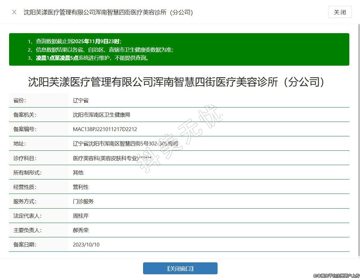 沈陽芙漾醫(yī)療管理有限公司渾南智慧四街醫(yī)療美容診所(分公司)