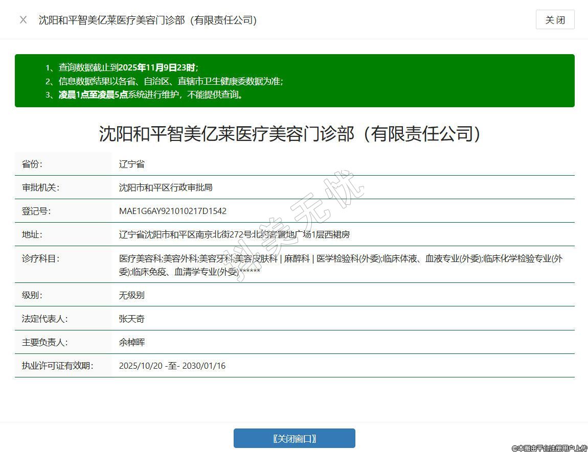 沈陽和平智美億萊醫(yī)療美容門診部(有限責(zé)任公司)