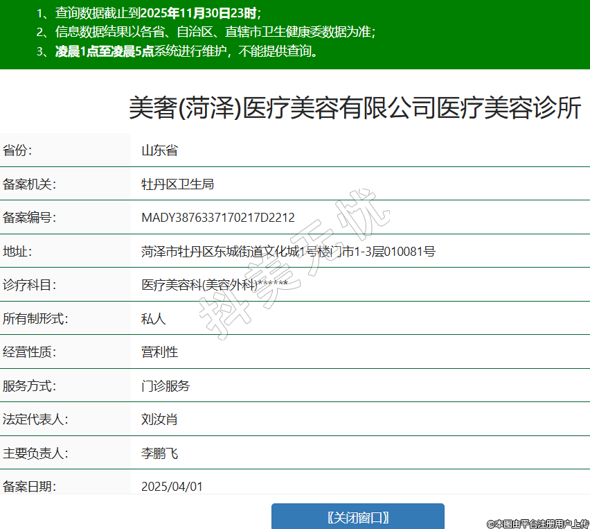 美奢(菏澤)醫(yī)療美容有限公司醫(yī)療美容診所