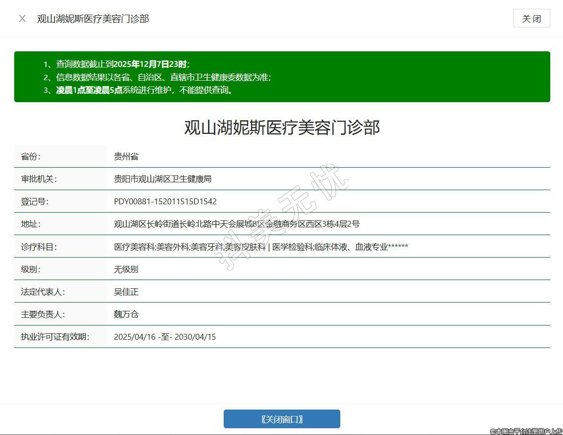 貴陽妮斯醫(yī)療美容門診部成立于2024年,位于貴州省貴陽市觀山湖區(qū)長嶺街道長嶺北路中天會展城B區(qū)金融商務(wù)區(qū)西區(qū)3棟4層2號,是經(jīng)貴陽市觀山湖區(qū)衛(wèi)生健康局批準(zhǔn)設(shè)立的正規(guī)醫(yī)美機(jī)構(gòu),診療科目涵蓋醫(yī)療美容科(美容外科、美容牙科、美容皮膚科)及醫(yī)學(xué)檢驗(yàn)科,配備專業(yè)醫(yī)美設(shè)備,可開展眼眉整形、面部輪廓塑造、除皺抗衰老、面部微整等醫(yī)美服務(wù),為求美者提供規(guī)范化醫(yī)美診療方案。