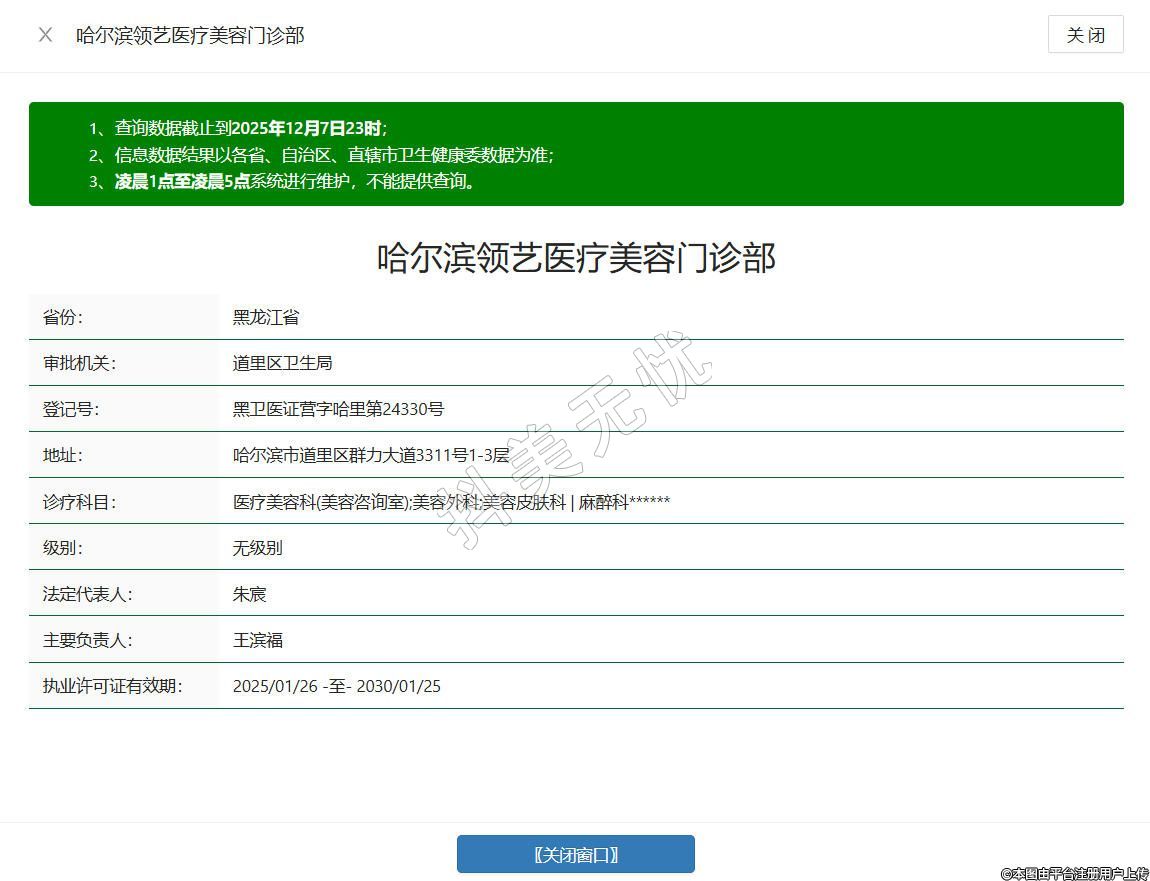 哈爾濱領(lǐng)藝醫(yī)療美容門診部成立于2024年,位于黑龍江省哈爾濱市道里區(qū)群力大道3311號1-3層,是經(jīng)哈爾濱市道里區(qū)衛(wèi)生健康局審批的正規(guī)醫(yī)療美容機構(gòu),診療科目涵蓋美容外科、美容皮膚科、麻醉科等核心領(lǐng)域,并通過協(xié)議合作完善醫(yī)學(xué)影像、檢驗配套服務(wù),以專業(yè)醫(yī)師團隊為核心競爭力,可開展鼻胸整形、眼部年輕化、脂肪填充、敏感肌修復(fù)等多元項目,為求美者提供個性化、規(guī)范化的醫(yī)美服務(wù)。