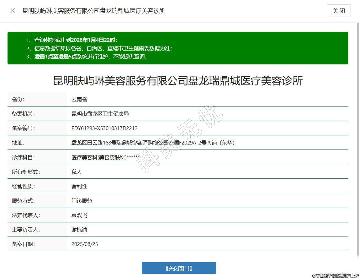 昆明膚嶼琳美容服務(wù)有限公司盤龍瑞鼎城醫(yī)療美容診所