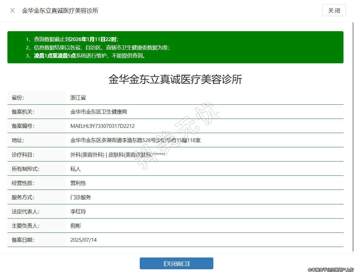 金華金東立真誠醫(yī)療美容診所成立于2025年,位于浙江省金華市金東區(qū)多湖街道李漁東路528號步陽華府15幢118室,是一家合規(guī)經(jīng)營的專業(yè)醫(yī)療美容機構,已按規(guī)定完成相關備案手續(xù),持有合法經(jīng)營資質(zhì),經(jīng)營范圍涵蓋醫(yī)療美容服務、生活美容服務等合規(guī)項目,致力于為顧客營造健康、放心的消費環(huán)境。