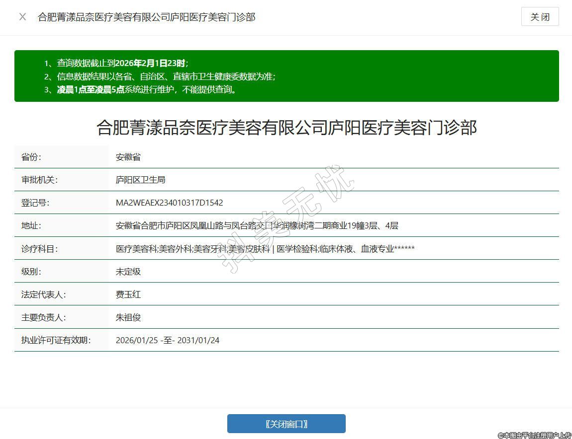 合肥菁漾品奈醫(yī)療美容有限公司廬陽(yáng)醫(yī)療美容門(mén)診部
