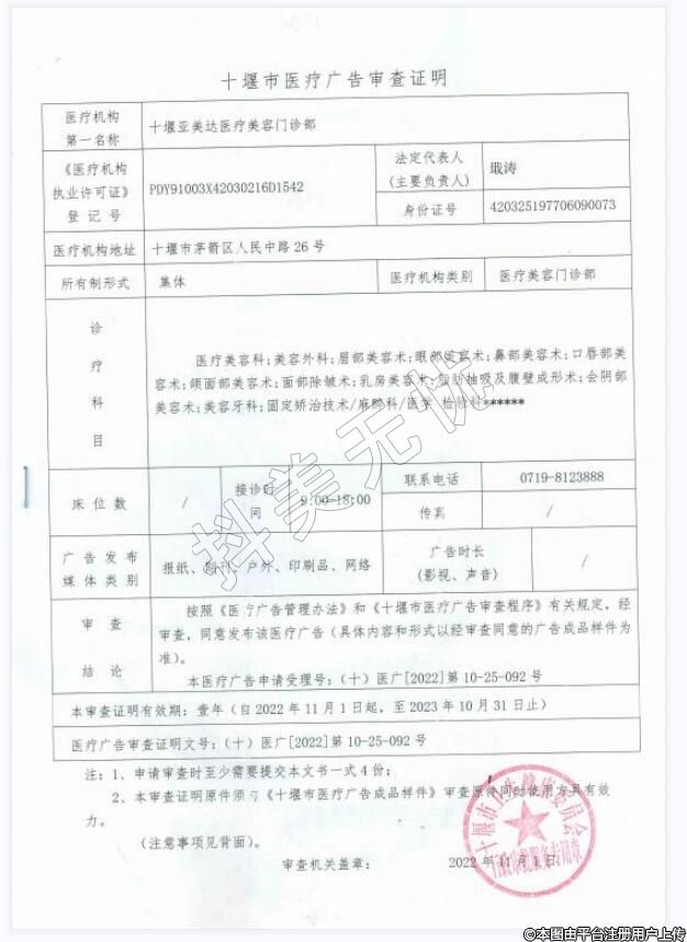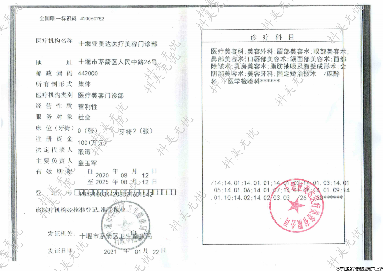 醫(yī)療機(jī)構(gòu)名稱:十堰亞美達(dá)醫(yī)療美容門診部