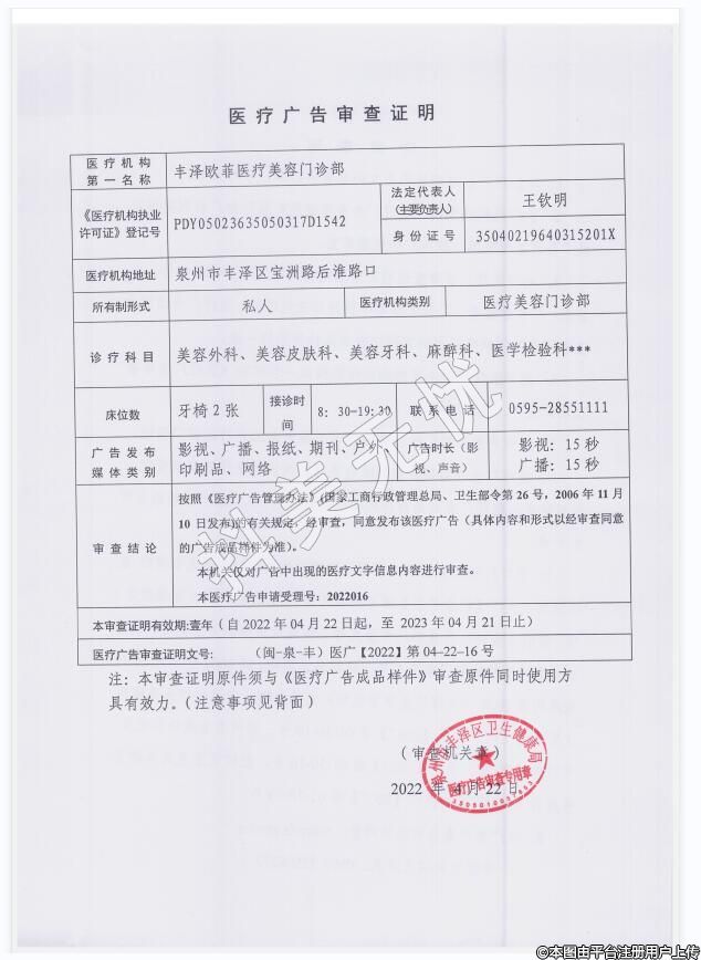 機構名稱:豐澤歐菲醫(yī)療美容門診部