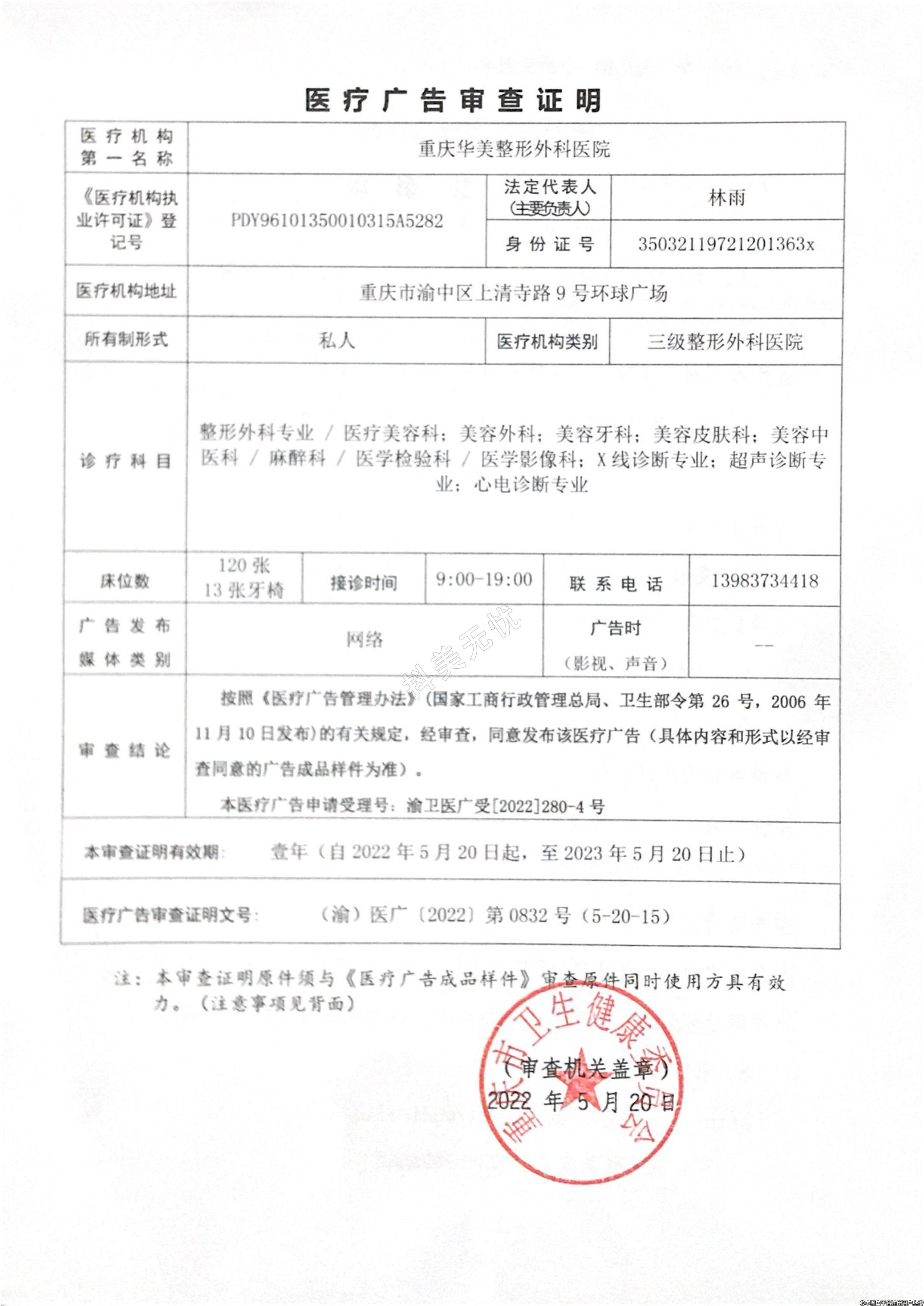 醫(yī)療機構(gòu)名稱:重慶華美整形外科醫(yī)院