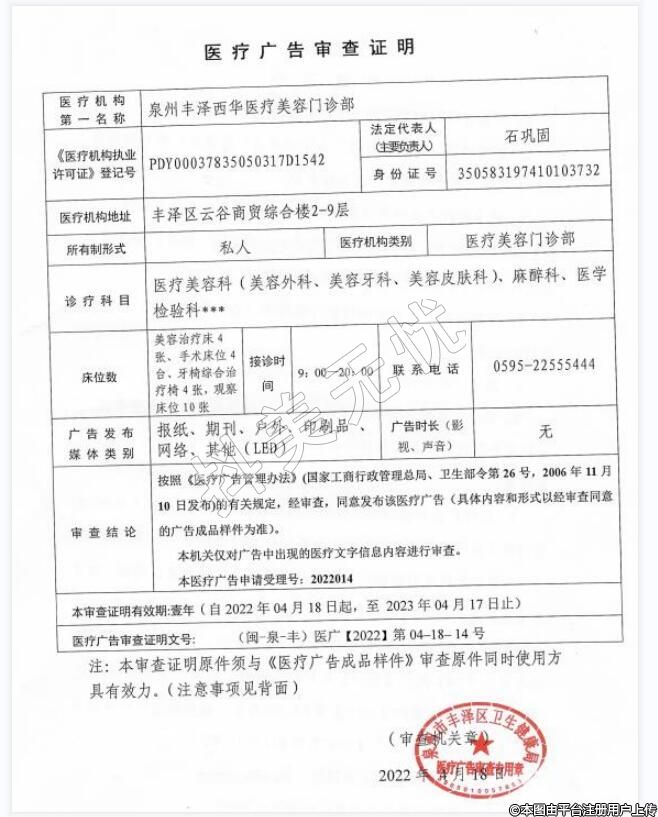 機構(gòu)名稱:泉州豐澤西華醫(yī)療美容門診部