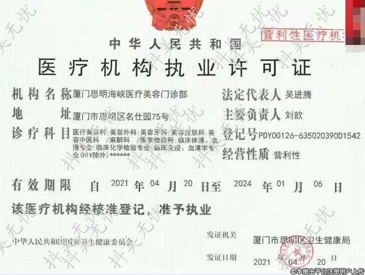 機(jī)構(gòu)名稱(chēng):廈門(mén)思明海峽醫(yī)療美容門(mén)診部