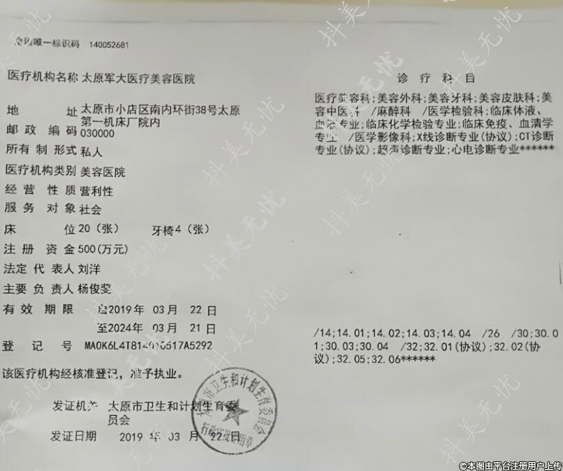 醫(yī)療機構(gòu)名稱:太原軍大醫(yī)療美容醫(yī)院