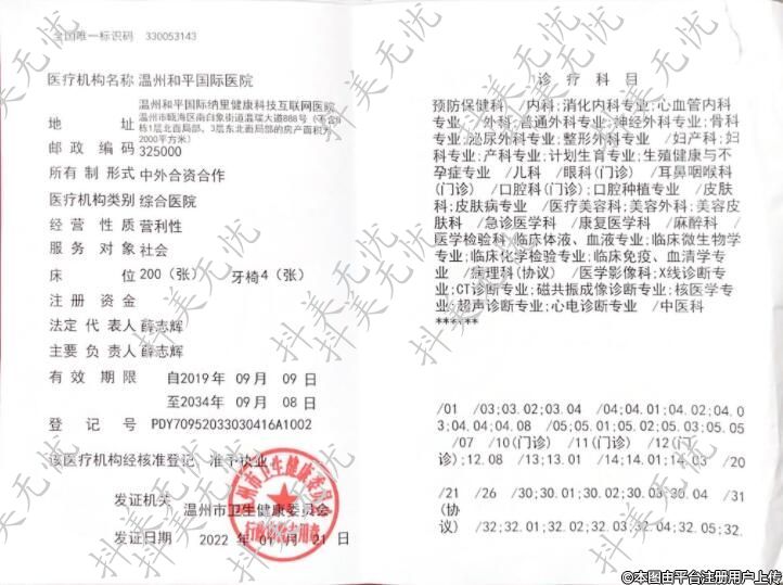 醫(yī)療機構名稱:溫州和平國際醫(yī)院