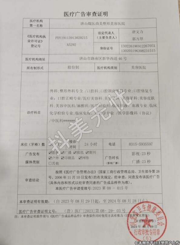 醫(yī)療機(jī)構(gòu)名稱:唐山煤醫(yī)尚美整形美容醫(yī)院
