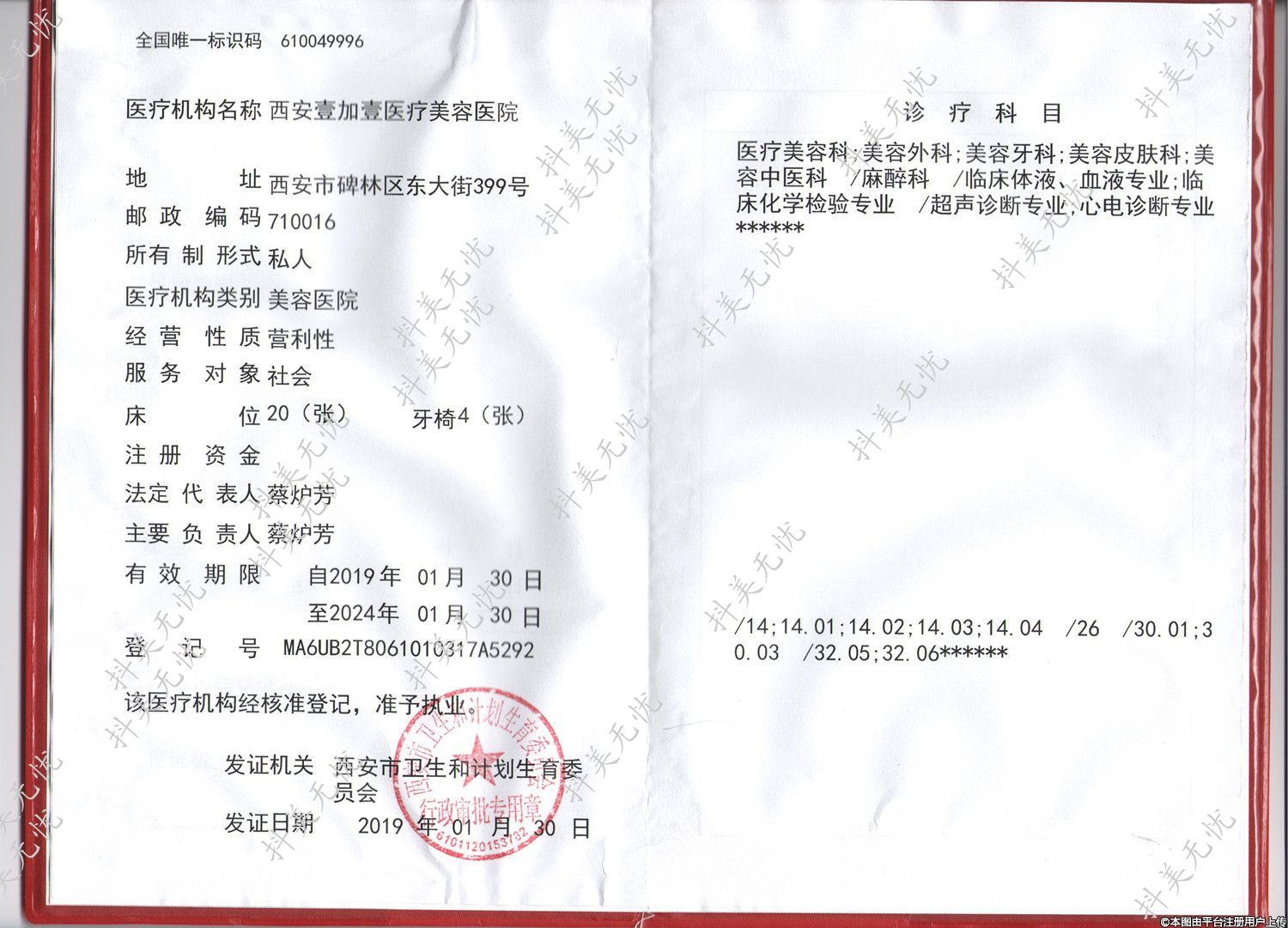 醫(yī)療機(jī)構(gòu)名稱:西安壹加壹醫(yī)療美容醫(yī)院