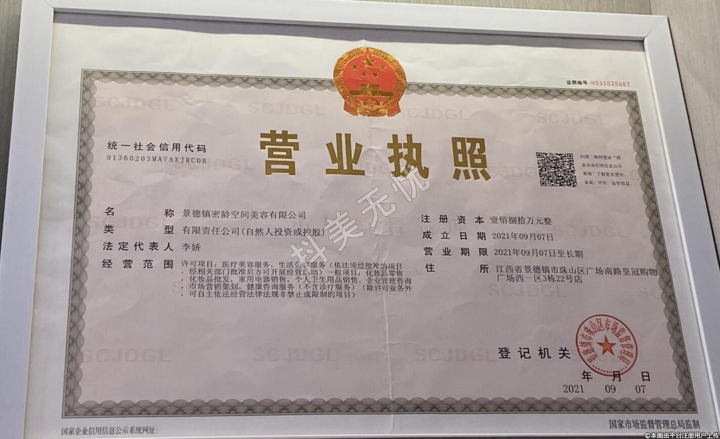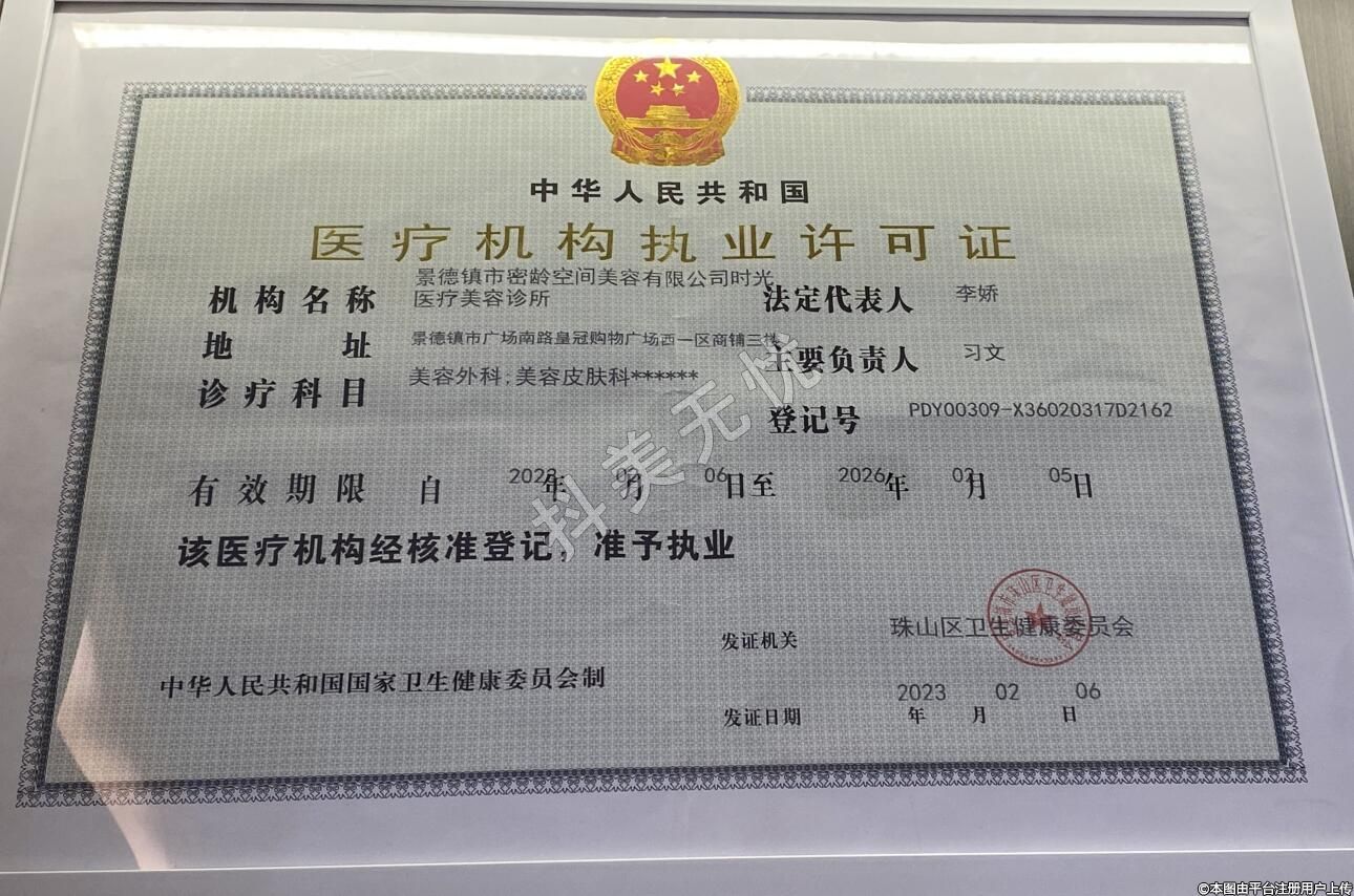 機(jī)構(gòu)名稱:景德鎮(zhèn)市密齡空間美容有限公司時光醫(yī)療美容診所